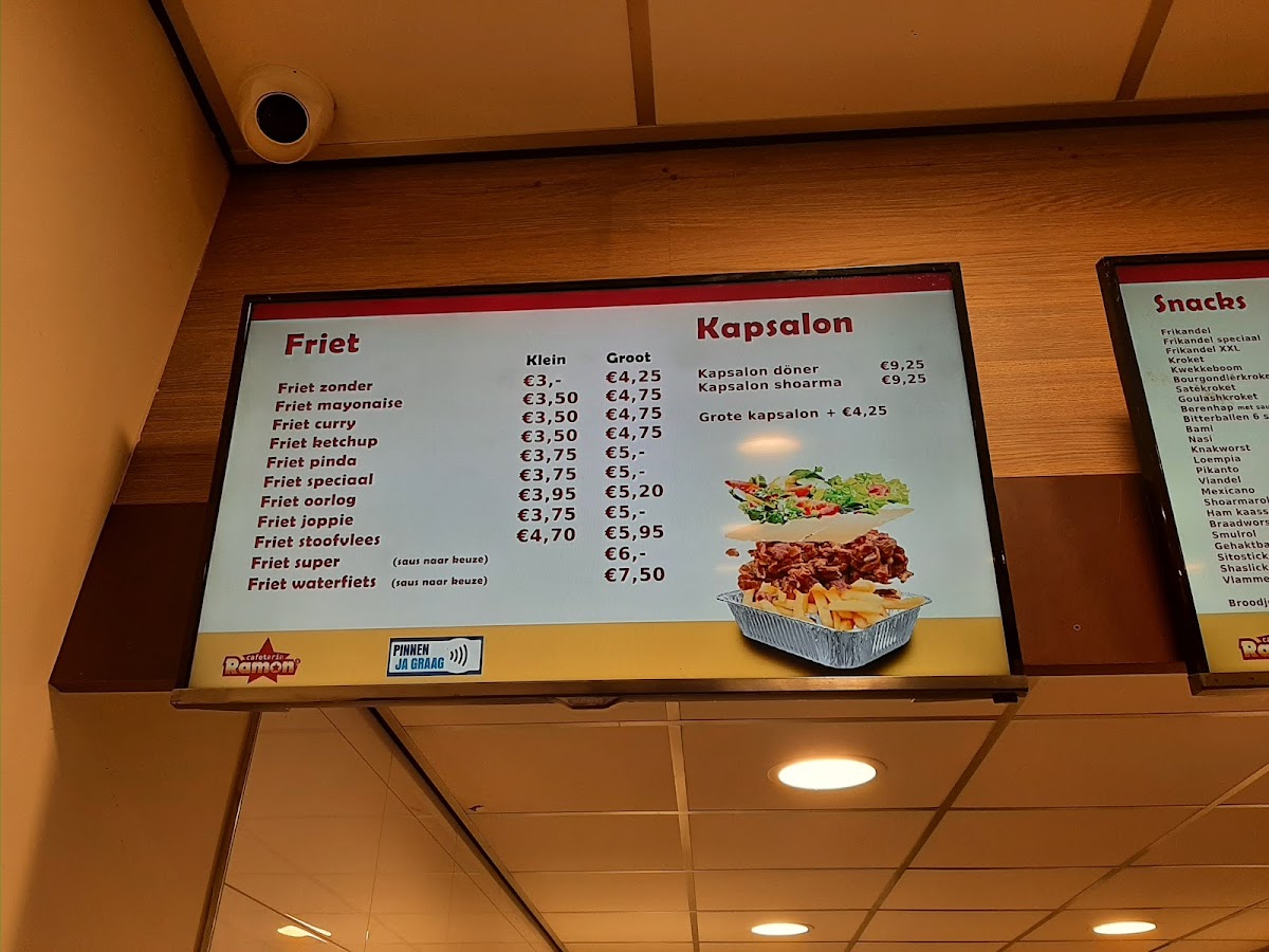 Although Cafetaria Ramon primarily serves as a takeaway, there are limited seating options available for those who wish to enjoy their meal on-site. Justin van Schaick described it as a “basic snackbar” that offers great cleanliness and friendly service, affirming the atmosphere is just as important as the food quality.